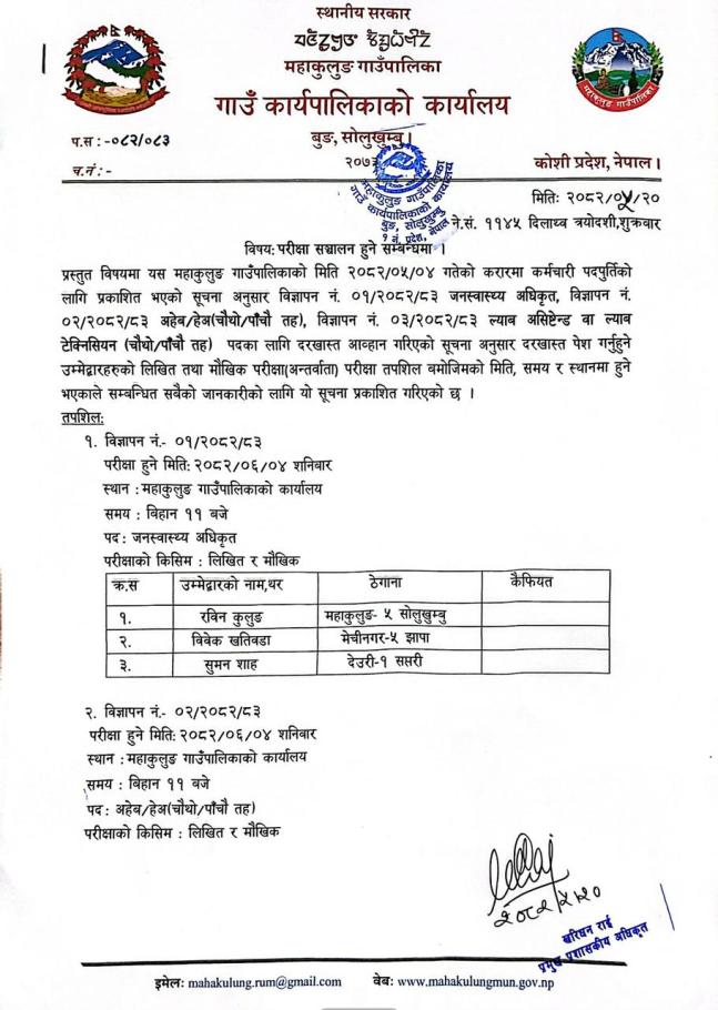 » परीक्षा सतञ्चालन हुने सम्बन्धी सूचना ।