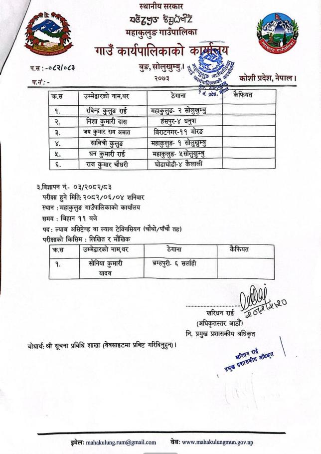 सफल उम्मेद्वार सिफारिस गरिएको सम्बन्धमा ।