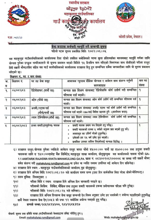 सेवा करारमा कर्मचारी पदपूर्ति गर्ने सम्बन्धी सूचना ।