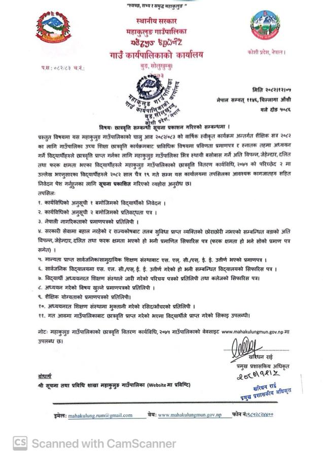 » छात्रवृत्ति सम्बन्धी सूचना ।